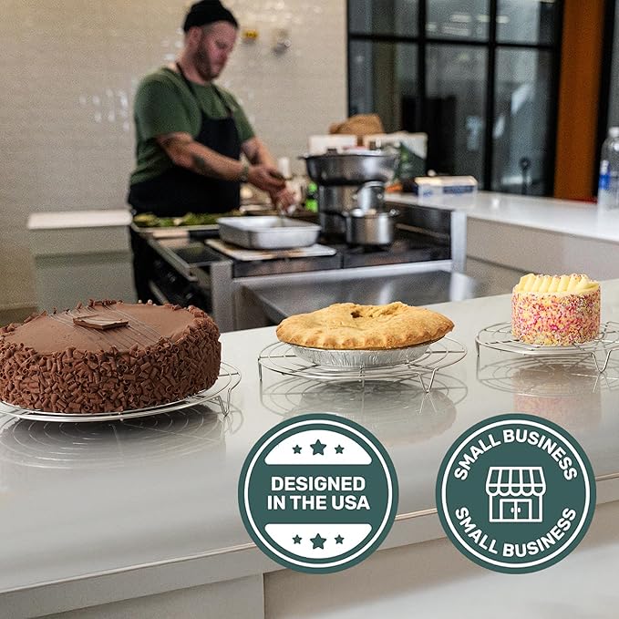 Ultra Cuisine 3 Set Round Cooling Racks for Cooking and Baking – Oven & Dishwasher-Safe, 100% Stainless Steel Steaming and Baking Rack - Fits Air Fryer, Pressure Cooker & Cake Pan (7.5, 9 & 10.5 Inch)