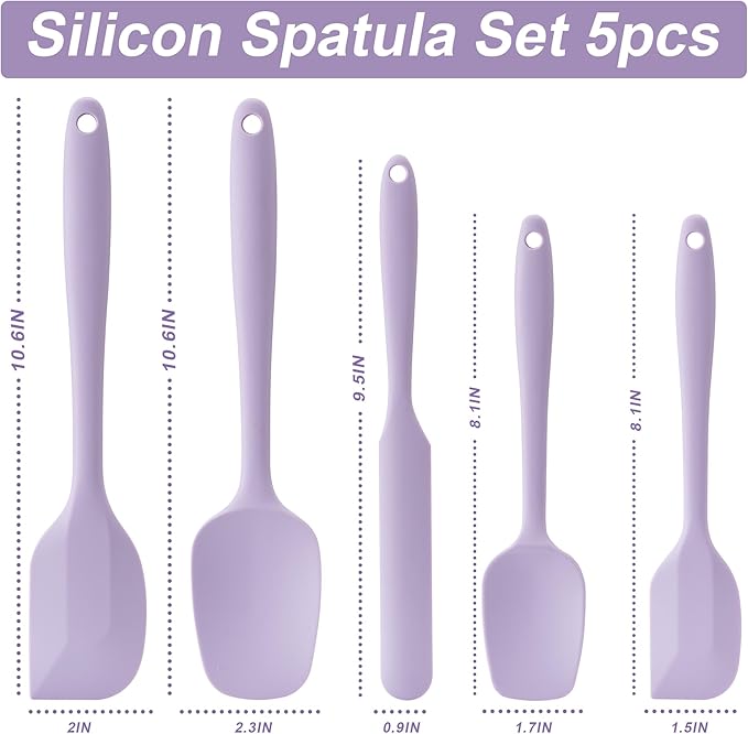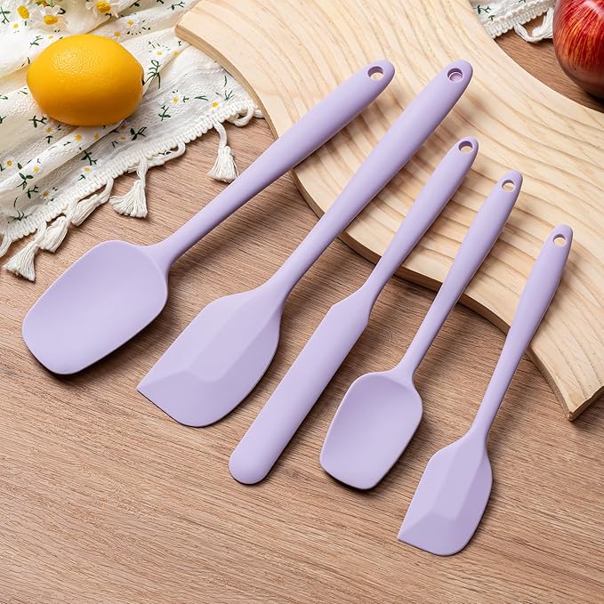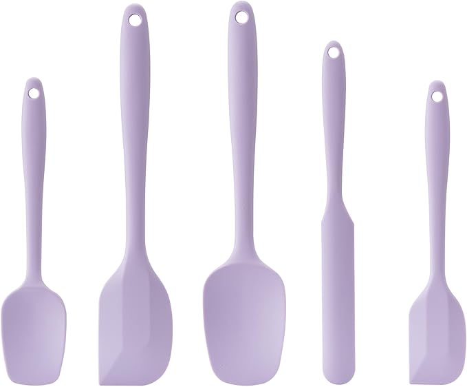Silicone Spatula Set, 5 Piece Food Grade Rubber Spatulas for Baking, Cooking, and Mixing High Heat Resistant Non Stick Dishwasher Safe BPA-Free (Lavender)