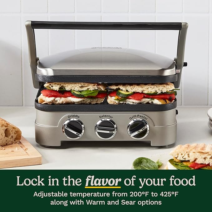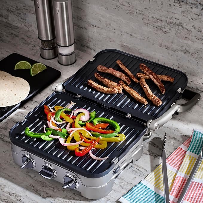 Cuisinart Griddler Indoor Grill, Panini Press, Sandwich Maker & More, 5-in-1 Grilling, Dishwasher-Safe Nonstick Cooking Plates, GR-4NNAS, Stainless Steel