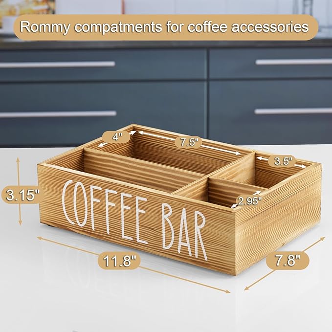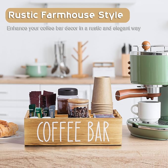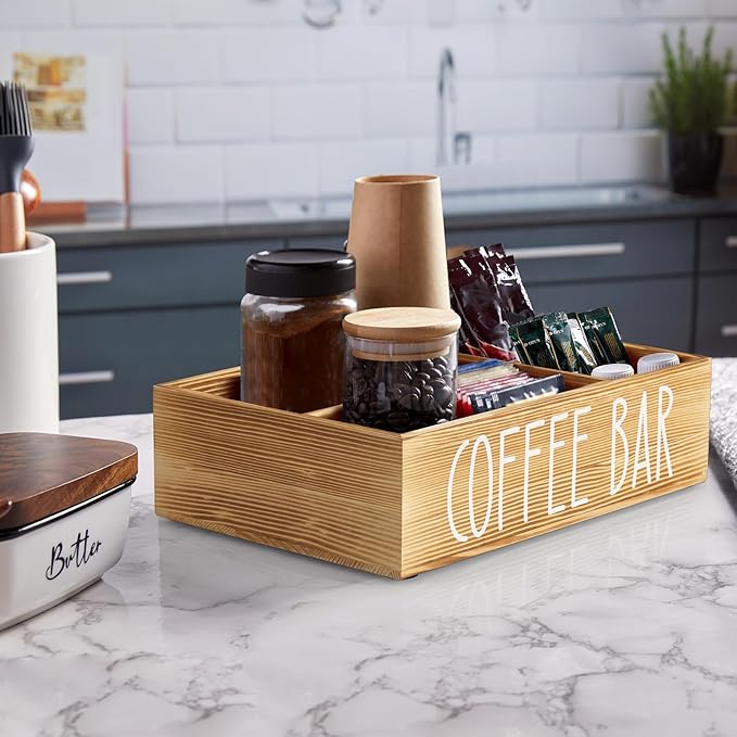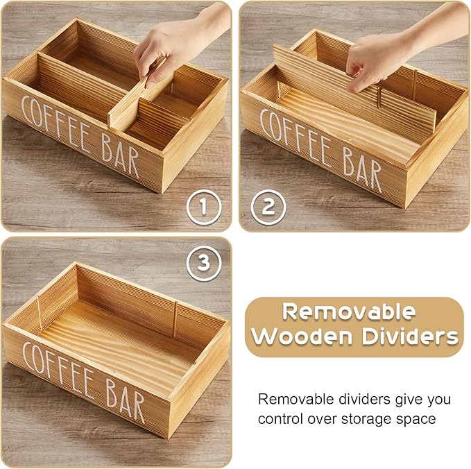 ALELION ALEION Brown Coffee Station Organizer - Wood Coffee Bar Accessories Organizer with Removable Dividers for Pods Condiment Syrup Tea Cups Stirrers - for Farmhouse Coutertop Decor
