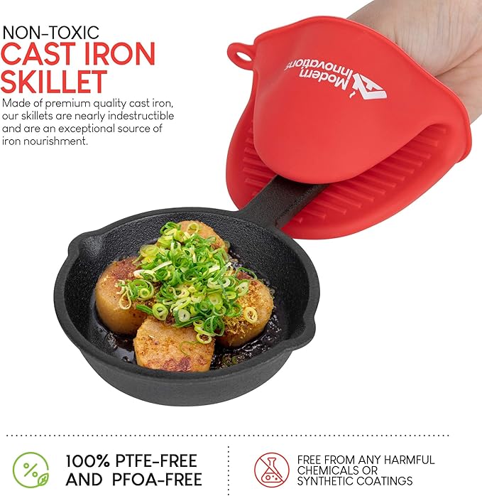 About This NON-TOXIC CAST IRON SKILLET: Make your food sizzle with Modern Innovations Mini Cast Iron Skillet Value Pack! Made... Read more