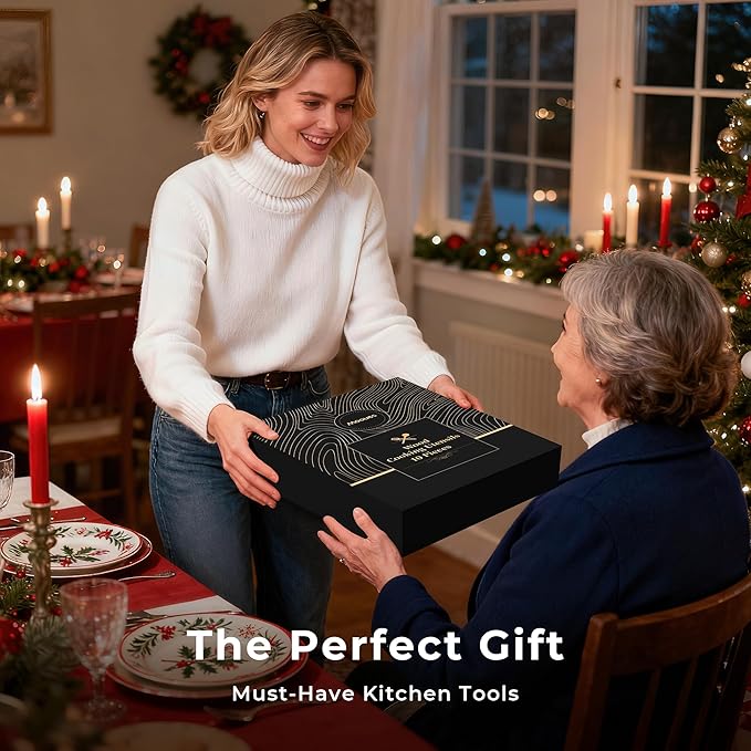 10-Piece Wooden Spoons for Cooking - Natural Teak Cooking Utensils with Premium Gift Box - Kitchen Gift Set -Soft Comfort-Grip Wood Spoons for Cooking