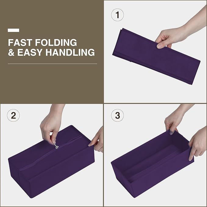 DIMJ Drawer Organizers Clothes, Set of 4 Dresser Organizer Bins, Fabric Closet Organizers and Storage, Shallow Drawer Dividers for Nursery, Clothing, Baby Clothes, Socks, Underwears, Tie (Purple)