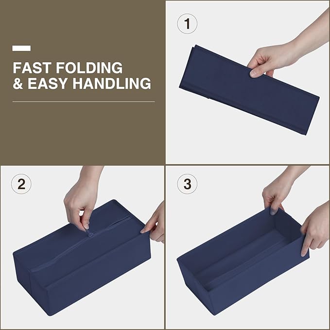 DIMJ Drawer Organizers Clothes, Set of 8 Dresser Organizer Bins, Fabric Closet Organizers and Storage, Shallow Drawer Dividers for Nursery, Clothing, Baby Clothes, Socks, Underwears, Tie (Navy Blue)