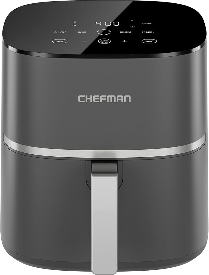 Chefman TurboX 4-in-1 Air Fryer, 5-Quart Airfryer for Extra Crispy Chicken, Fries, Wings, and More, Air Fry, Bake, Reheat, and Frozen Functions, Digital Touch Controls, Dishwasher Safe - Gray