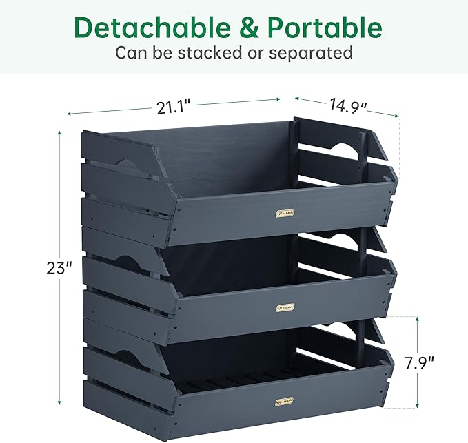 • Sturdy & Durable: Made from solid wood, these onion and potato storage bins are built to last with a polished finish that resists cracking and warping