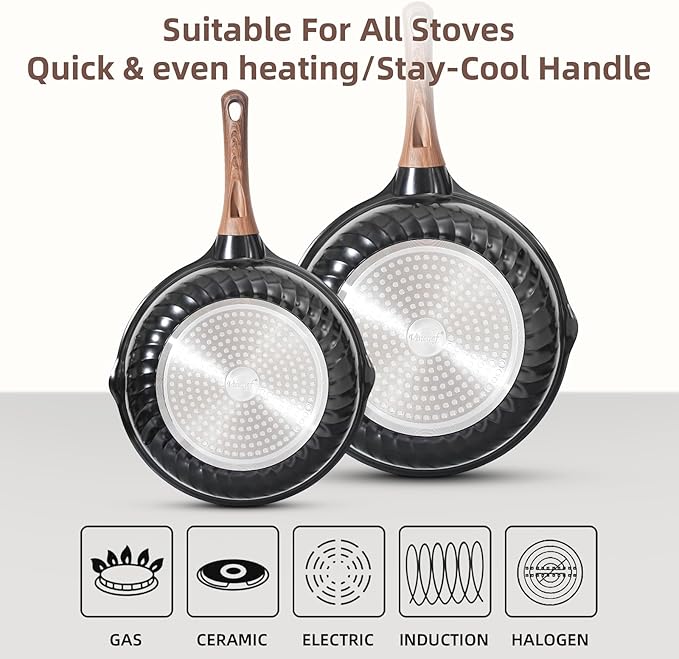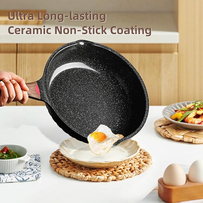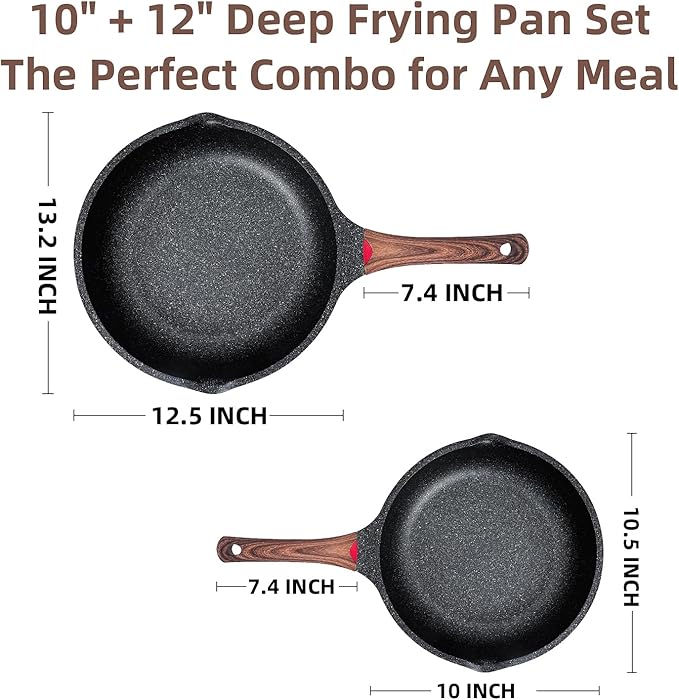 Vinchef Non Stick Frying Pans Set,10" & 12" Ceramic Pan with Lid, Deep Frying Pan & Saute Skillet, PFAS PFOA & PTFE Free, Visual Heat Indicator, Induction Ready, Frying Pans Nonstick Skillet with Lid