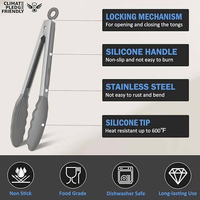 About This Premium Materials: EEKEDO kitchen tongs are constructed with food-grade stainless steel and silicone. Carbon free.Thickened stainless steel makes... Read more