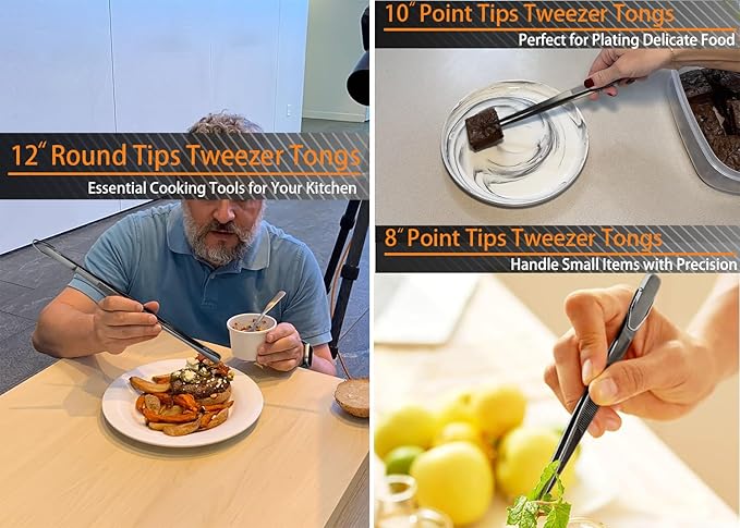 About This 【PROFESSIONAL KITCHEN TWEEZERS SET】- The set of 3 sizes different designs of 12" 10" and 8" inch black... Read more