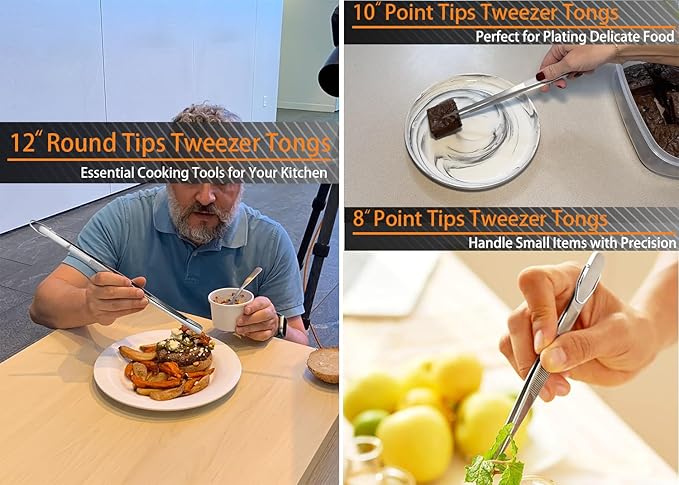 About This 【PROFESSIONAL KITCHEN TWEEZERS SET】- The set of 3 sizes different designs of 12" 10" and 8" inch food... Read more