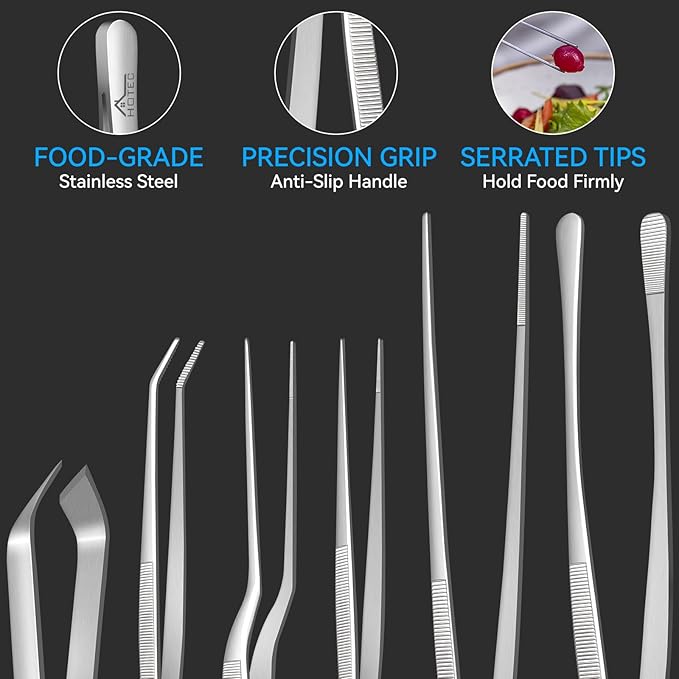 About This FOOD-GRADE STAINLESS STEEL: The heavy duty Hotec cooking tweezers built with stainless steel, sturdy, heat resistance, anti-rust, anti-corrosion,... Read more