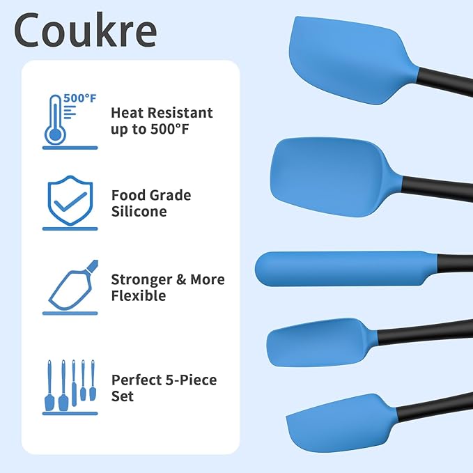 About This [Versatile Spatula 5-Piece]: Coukre Silicone spatulas heat resistant,1 large spatula, 1 small spatula, 1 large scoop spatula, 1... Read more