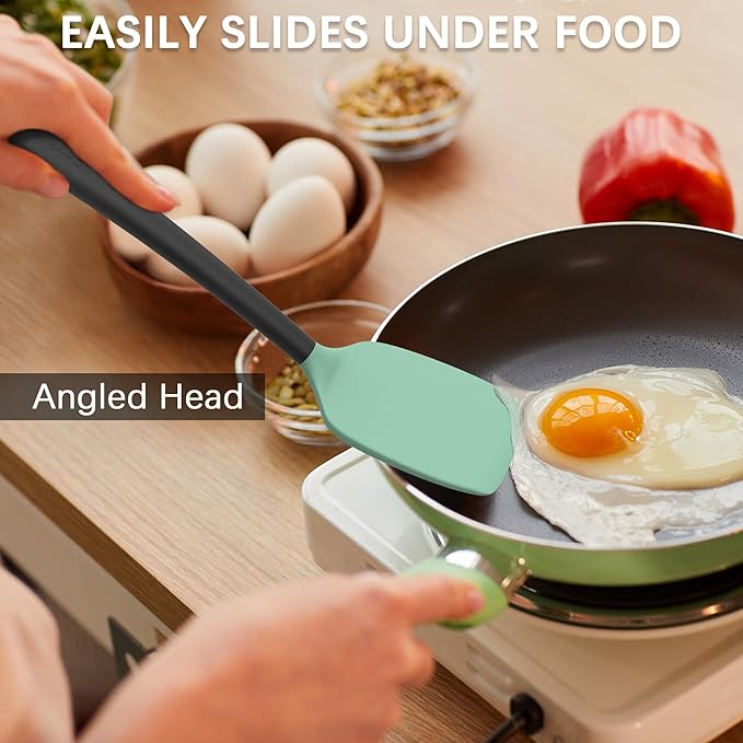 Coukre 3 Pack Silicone Spatula Set, High Heat Resistant, BPA-Free, Fish Spatula, Solid & Slotted Turner for Non-Stick Pans, Flipping Eggs, Pancakes, Fish, Burgers (3, AquaGreenBlack)