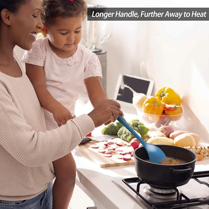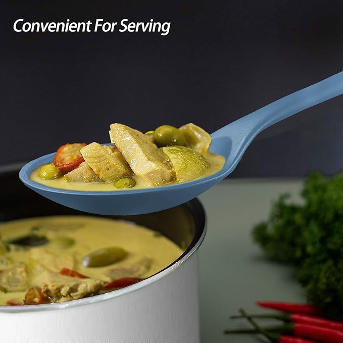 Silicone Spoons for Cooking - Extra Large Kitchen Spoons for Mixing, Serving, & Stirring - 600°F Heat-Resistant Non Stick Utensils Ladle & Skimmer- Dishwasher Safe, Starry Blue