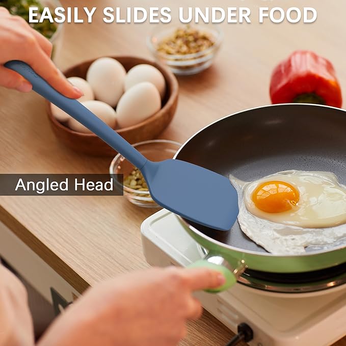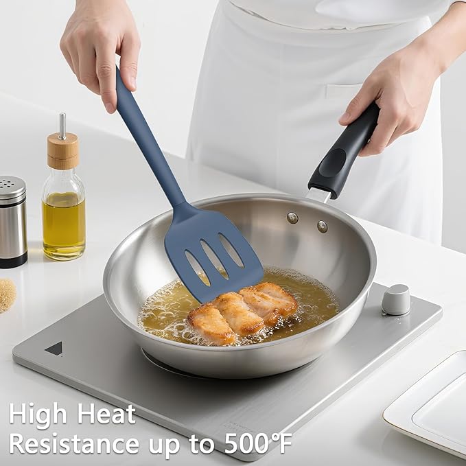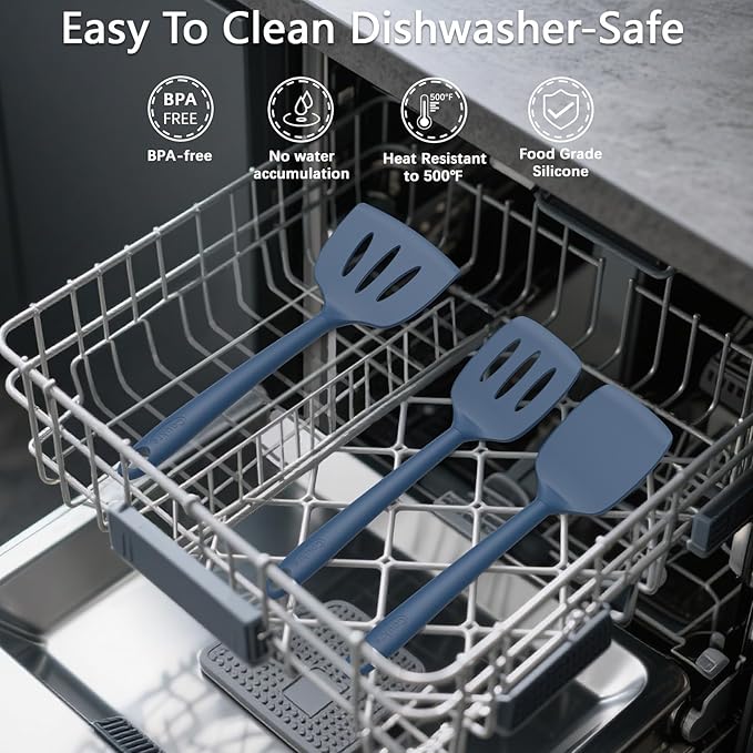 Coukre 3 Pack Silicone Spatula Set, High Heat Resistant, BPA-Free, Fish Spatula, Solid & Slotted Turner for Non-Stick Pans, Flipping Eggs, Pancakes, Fish, Burgers (3, PureDarkBlue)