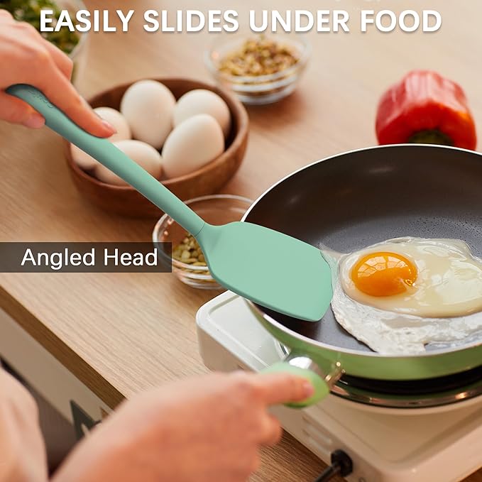 Coukre 3 Pack Silicone Spatula Set, High Heat Resistant, BPA-Free, Fish Spatula, Solid & Slotted Turner for Non-Stick Pans, Flipping Eggs, Pancakes, Fish, Burgers (3, PureAquaGreen)