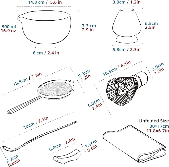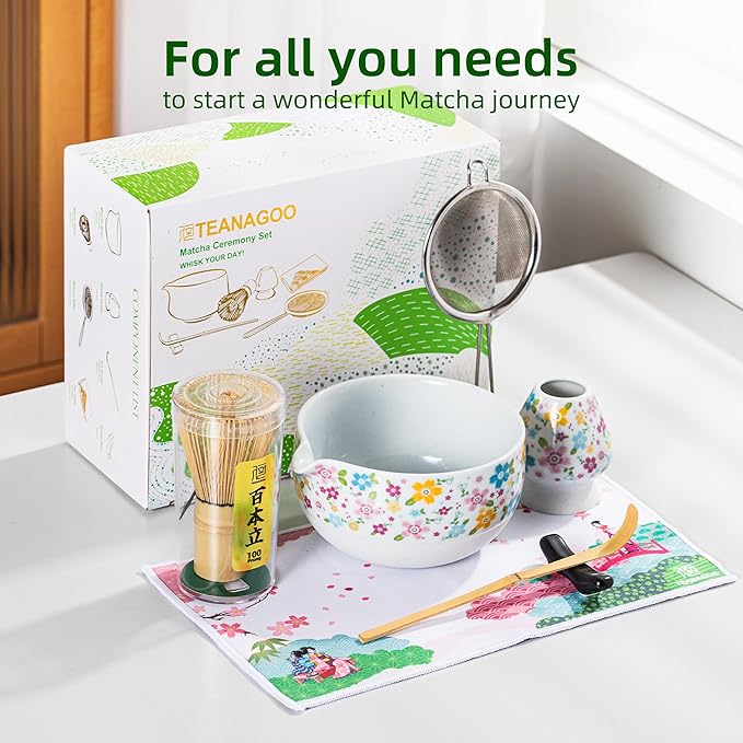 About This 7-PCS MATCHA WHISK SET: 1*Ceramic Bowl (chawan) 510 Ml/18 Oz, 1*Bamboo Whisk, 1*Bamboo Scoop (chashaku), 1*Cermaic Whisk Holder,... Read more