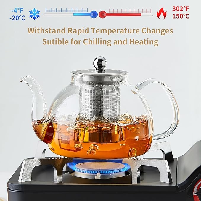 About This Durable Glass Teapot with Infuser: This teapot is made from heat-resistant borosilicate glass, ensuring safe use on stovetops... Read more