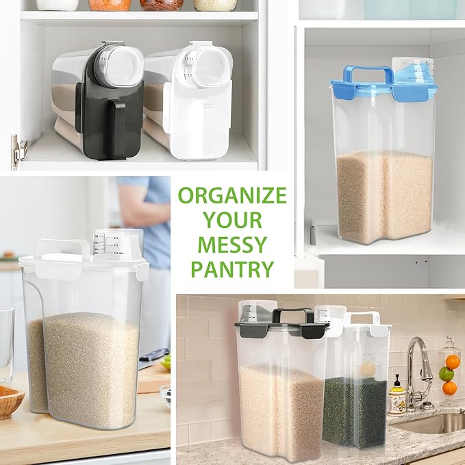 • CLEAR VISIBILITY&ORGANIZE BETTER- Clear container lets you identify contents at a glance. The rice container storage will keep your kitchen pantry neat and organized. And portable handle, easy to move and go out