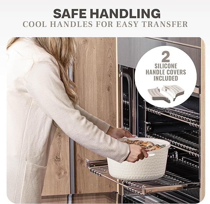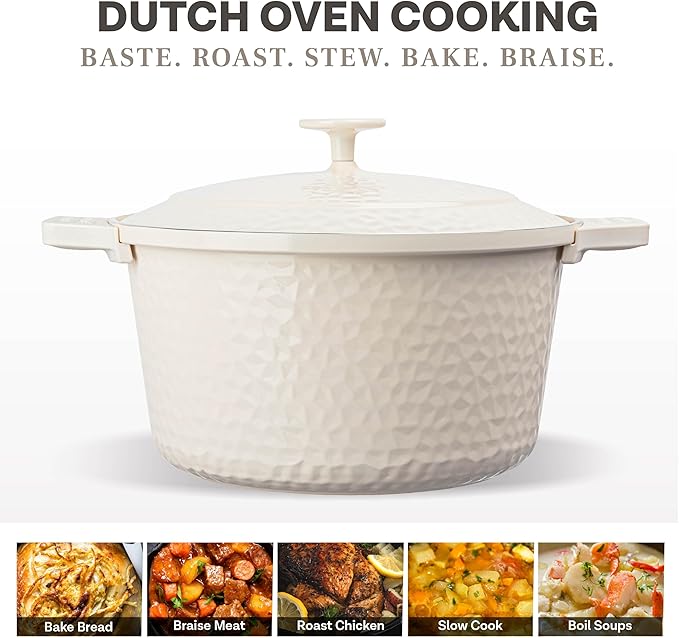 Gotham Steel Hammered 5 Qt Lightweight Dutch Oven Pot with Lid & Holders, Ceramic Non Toxic, Oven Safe & Even Heat Retaining Dutch Oven for Bread Baking Sourdough, Soup, 70% Lighter than Cast Iron