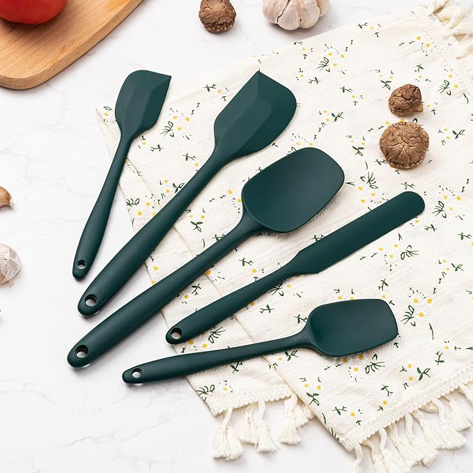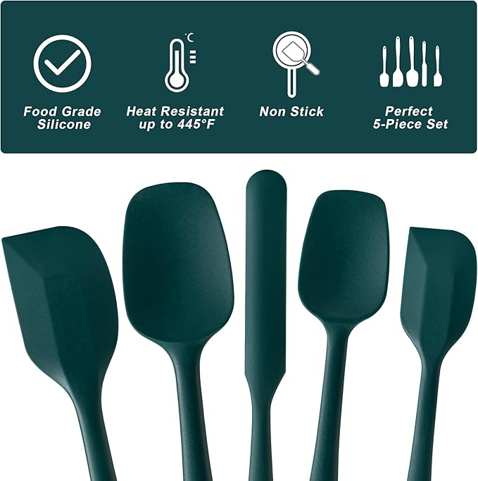Silicone Spatula Set, 5 Piece Food Grade Rubber Spatulas for Baking, Cooking, and Mixing High Heat Resistant Non Stick Dishwasher Safe BPA-Free (Dark Green)