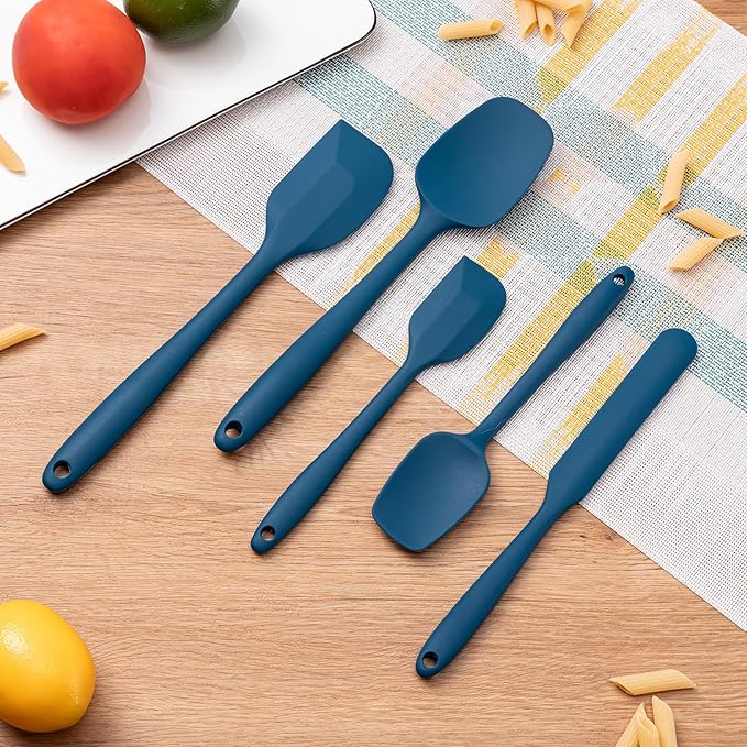 Silicone Spatula Set, 5 Piece Food Grade Rubber Spatulas for Baking, Cooking, and Mixing High Heat Resistant Non Stick Dishwasher Safe BPA-Free (Navy Blue)