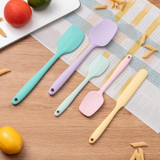 Silicone Spatula Set, 5 Piece Food Grade Rubber Spatulas for Baking, Cooking, and Mixing High Heat Resistant Non Stick Dishwasher Safe BPA-Free (Multicolor 3)