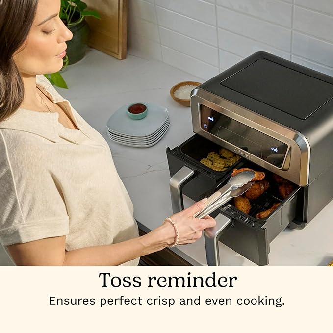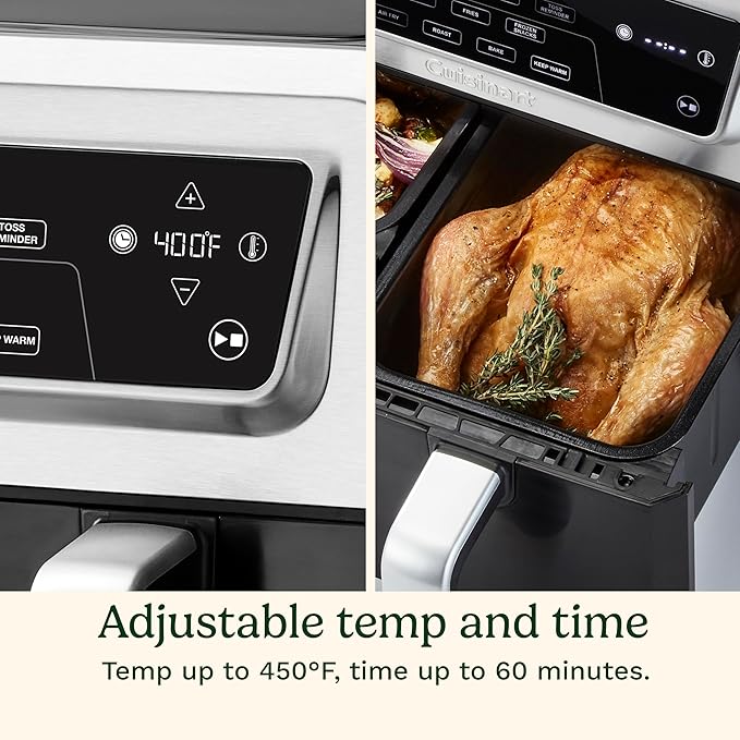 Cuisinart Dual Basket Air Fryer, 2-4.25 QT Baskets, Total 8.5 QT, 4 Functions Air Fry, Roast, Bake and Keep Warm, Features Sync Finish and Sync Settings, Toss Reminder, Auto Warm Mode and Auto-Pause