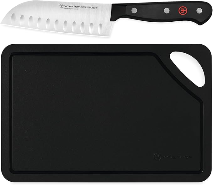 WÜSTHOF Gourmet 5" Santoku & 10" Black Cutting Mat Set