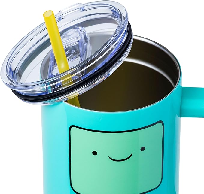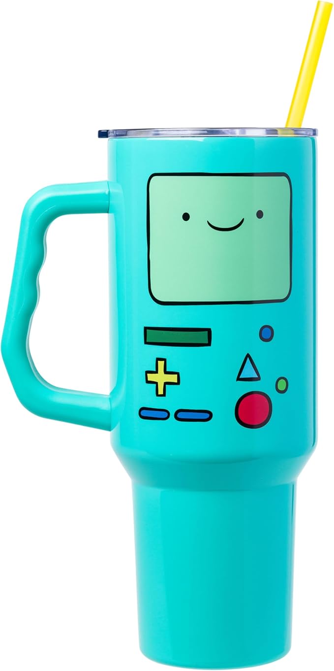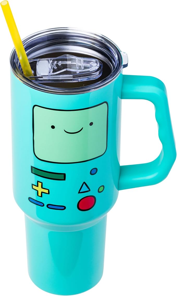 Silver Buffalo Adventure Time Featuring BMO Stainless Steel Tumbler with Handle and Straw, Fits in Standard Cup Holder, 40 Ounces