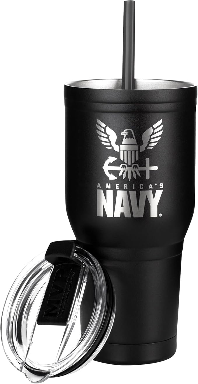 USN Stainless Steel Tumbler with Lid & Straw – Double-Wall Vacuum Insulated Travel Mug – Keeps Drinks Hot or Cold – Navy Gifts | America’s Navy 30oz