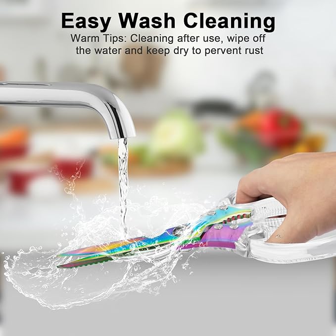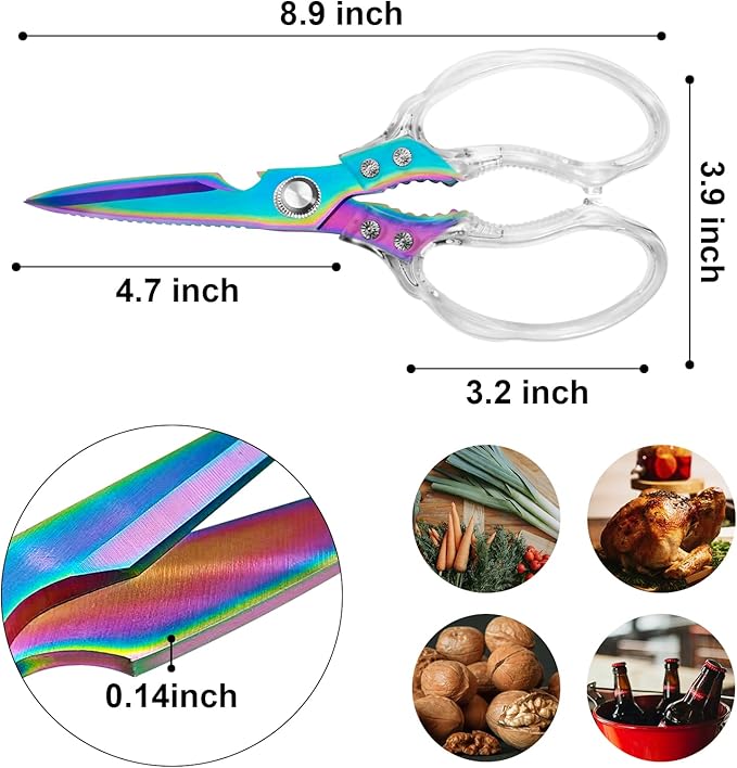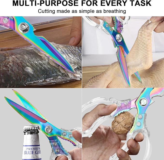 About This 【All Purpose Scissors】The multi-functional kitchen shears can also be used as nut crackers, bottle openers and scale scrapers,Heavy... Read more