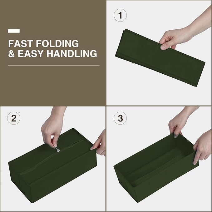 DIMJ Drawer Organizers Clothes, Set of 12 Dresser Organizer Bins, Fabric Closet Organizers and Storage, Shallow Drawer Dividers for Nursery, Clothing, Baby Clothes, Socks, Underwears, Tie (Green)