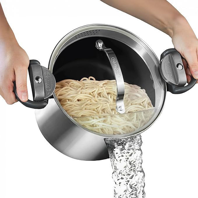 GOTHAM STEEL 8 Qt Stainless Steel Stock Pot Multipurpose Pasta Pot with Strainer Lid & Twist and Lock Handles, for Soup, Spaghetti, Rice, Induction Ready, Dishwasher Safe