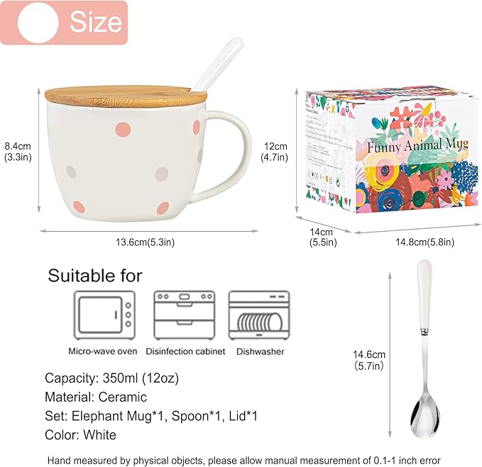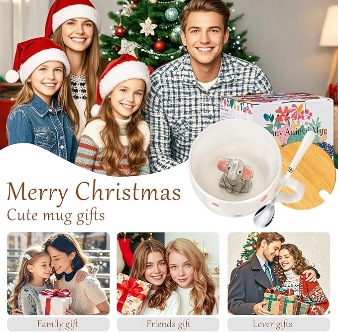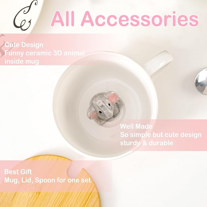 White Elephant Gifts for Adults Cute Elephant Mug with 3D elephant Inside Kawaii Ceramic Coffee Mug Tea Cup with Lid Spoon Friendship Birthday Christmas Gifts for Women Men Sisters Friend Coworkers