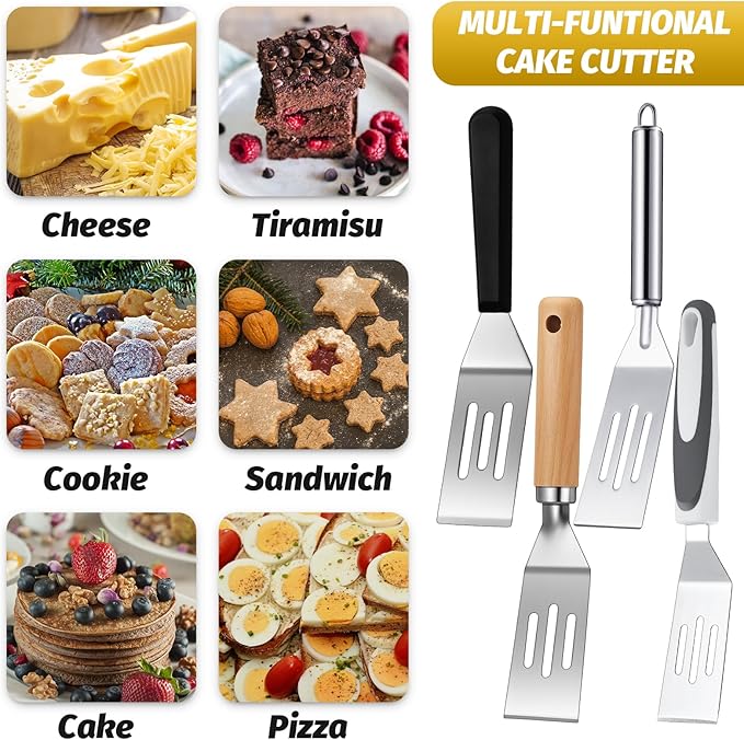 CHENGU 4 Pcs Mini Brownies Serving Spatula Stainless Steel Nonstick Serve Turner Cookie Slotted Spatula for Kitchen Cutting and Serving Desserts Small Frying Pan Cookie (4 Styles,4 Styles)