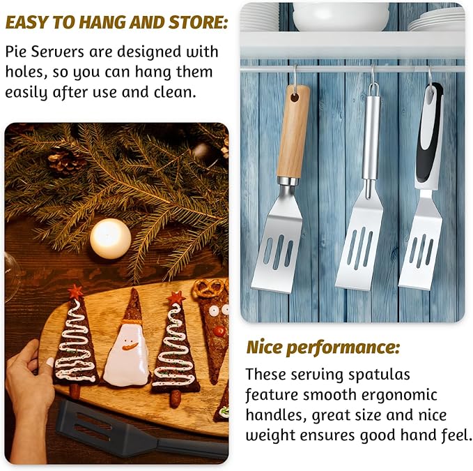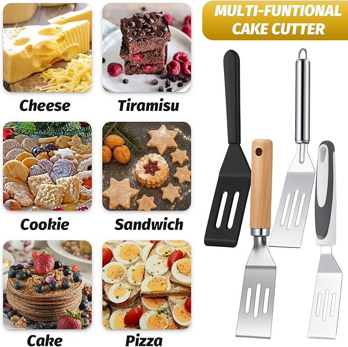 CHENGU 4 Pcs Mini Brownies Serving Spatula Stainless Steel Nonstick Serve Turner Cookie Slotted Spatula for Kitchen Cutting and Serving Desserts Small Frying Pan Cookie(3 Styles,4 Styles)