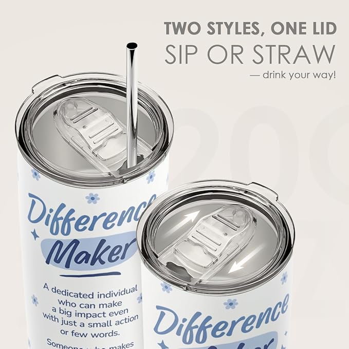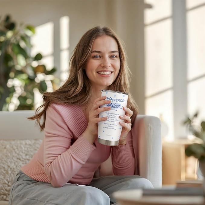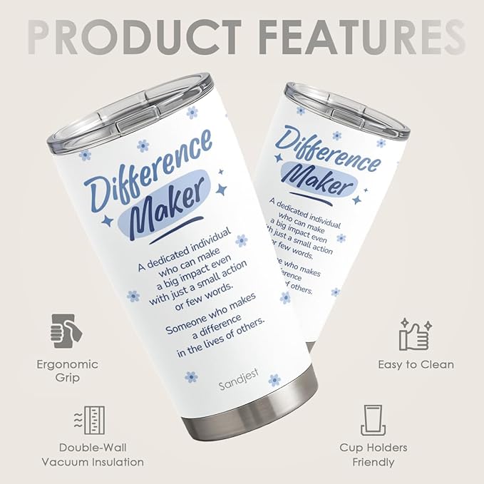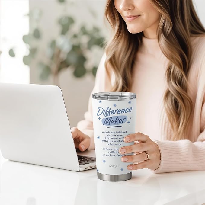 SANDJEST Inspiration Tumbler 20oz, Stainless Steel Travel Cup with Lid, Difference Maker Insulated Coffee Mug, Inspiration Gifts for Women Girls Friends Sisters on Birthday Christmas Valentine