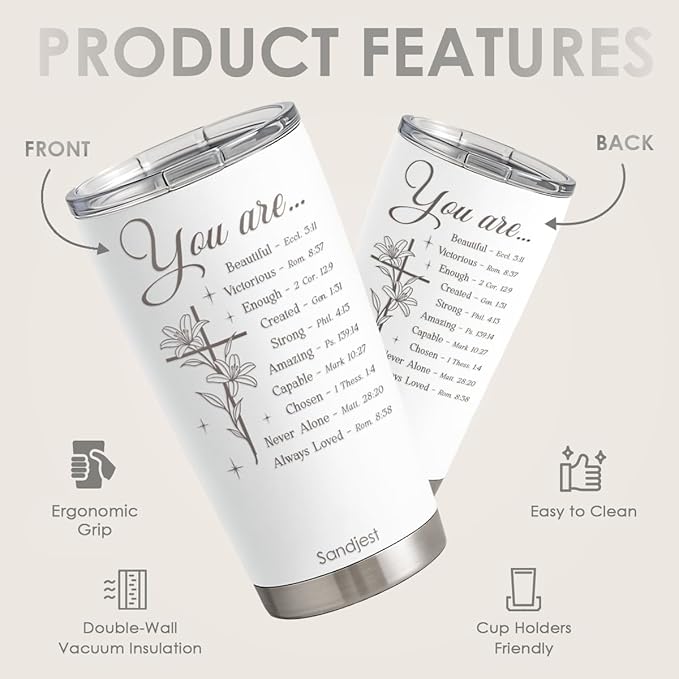 SANDJEST Christian Tumbler 20oz, Stainless Steel Travel Cup with Lid, You are Insulated Coffee Mug, Christian Gifts for Women Girls Friends Sisters on Birthday Christmas