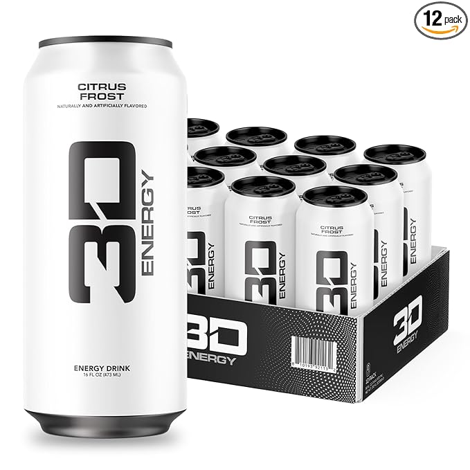 3D Energy Drink – Sugar Free, 200mg Caffeine, Pre Workout, Taurine, L-Carnitine, Lightly Carbonated, 16oz Cans, 12 Pack - Citrus Frost