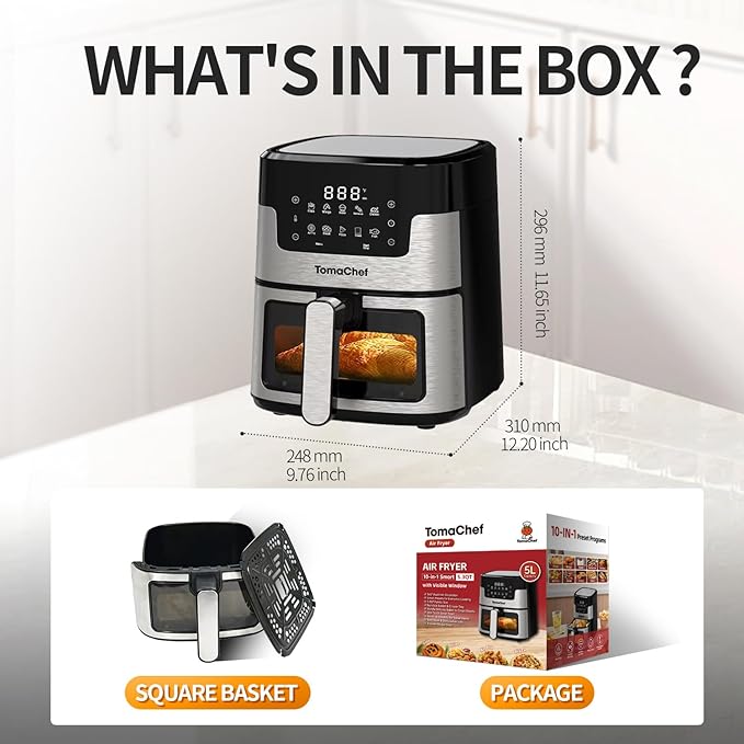 Air Fryer 10-in-1, 5.3QT Compact Oil Free Cooker with Visible Window & Dishwasher Safe Basket,Healthy Cooking, Digital Control for Family