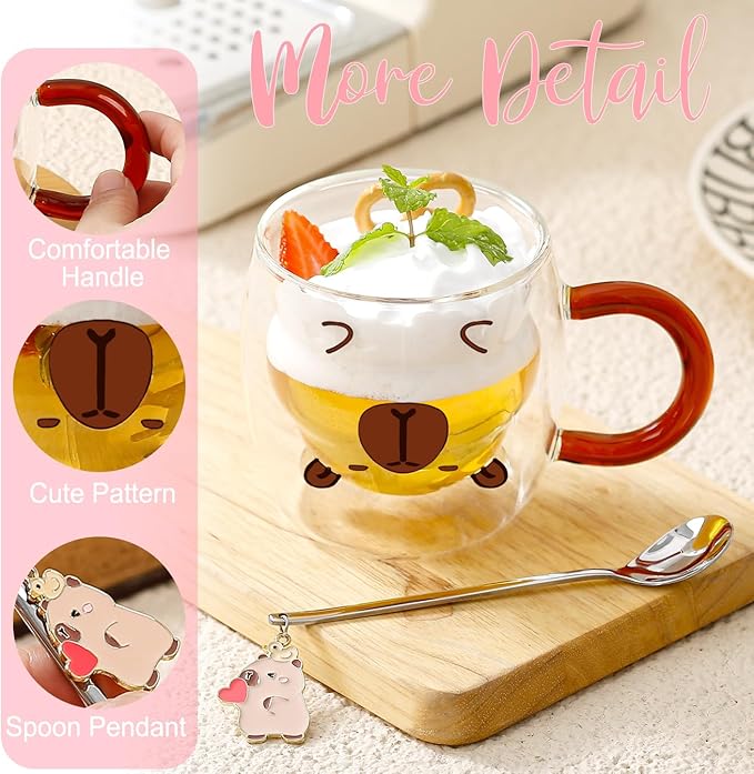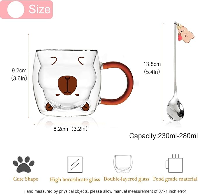 About This Capybara Birthday Gifts for Women: This adorable capybara double walled glasses stands 9.2cm (3.6in) tall and 8.2cm (3.2in)... Read more