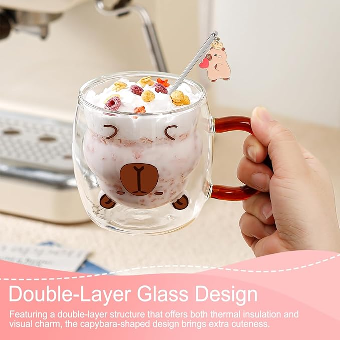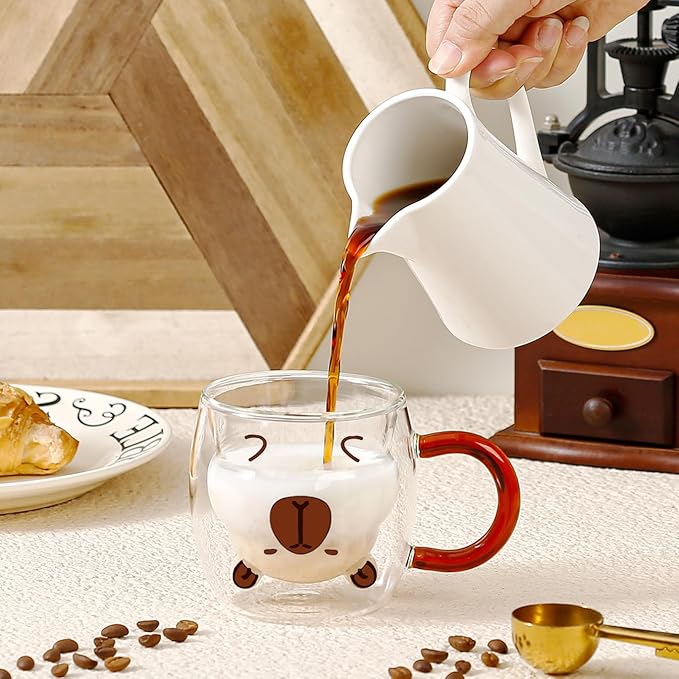 Birthday Gifts for Women Men Cute Capybara Mug Double Walled Coffee Glasses Cups Tea Cappuccino Latte Cup Funny Christmas Gifts Cute Capybara Stuff Gift for Mom Friend Coworker Her Him Home Decor