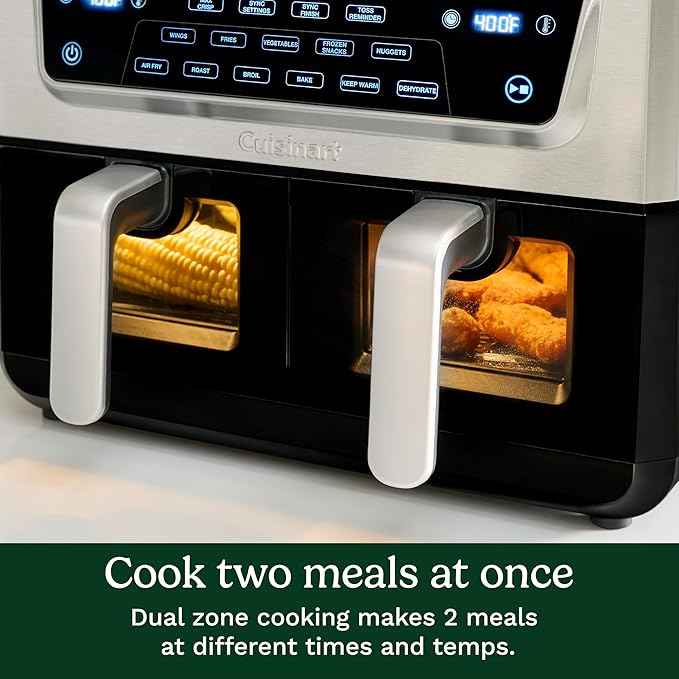 Cuisinart Dual Basket Air Fryer, Two Baskets 11 Qt in Total, 6 Functions: Air Fry, Roast, Bake, Broil, Dehydrate & Keep Warm, Features Sync Finish & Sync Settings, Toss Reminder & Auto-Pause, ADZ-112