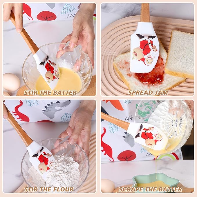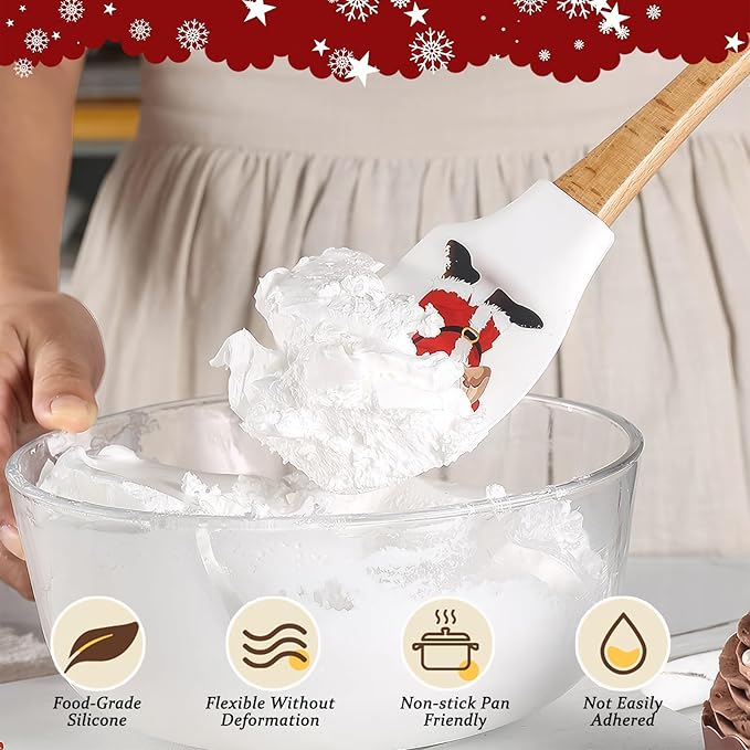 Silicone Spatula, Caliamary 3 Pieces Kitchen Silicone Spatula Set, Christmas Cake Decorating Spatula with Wooden Handle, Snowman Gingerbread Man and Santa Claus Pattern… (Santa Claus)