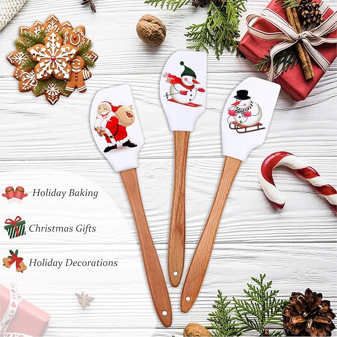 About This 3-piece Christmas-themed silicone spatula: Including a Santa Claus spatula, a gingerbread man spatula, a snowman spatula Food Grade... Read more