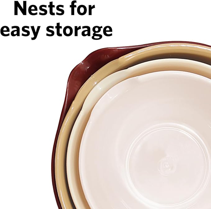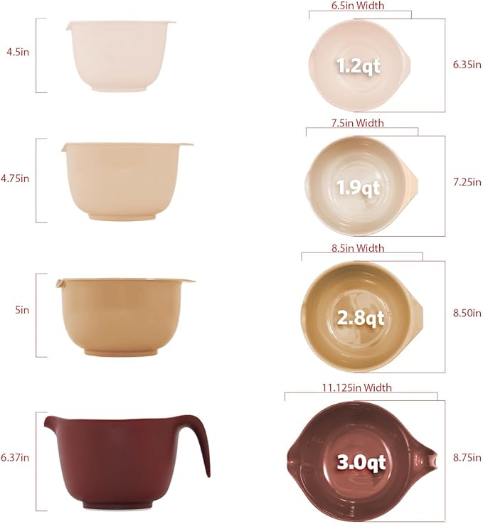 Glad Mixing Bowls with Pour Spout, Set of 4 - Nesting Plastic Bowls (1.2qt, 1.9qt, 2.8qt, and 3qt with Handle) - Non Slip Base, Dishwasher Safe Kitchen Cooking and Baking Supplies, Beige