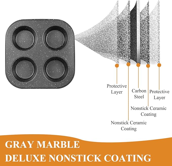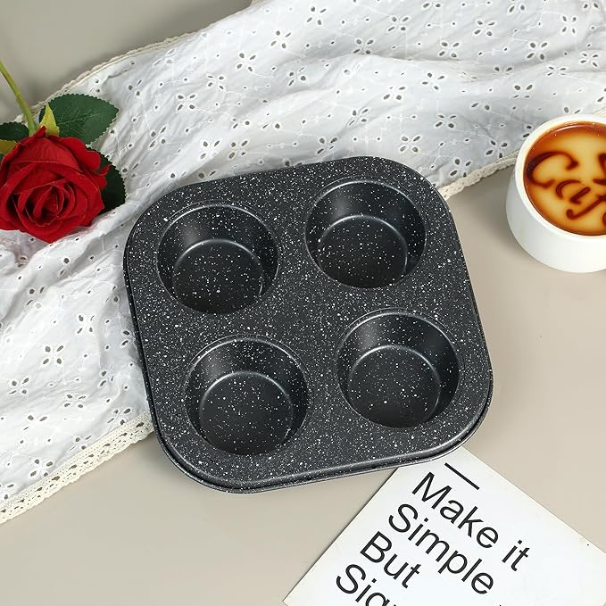 4 Cup Muffin Pan 2 Pack, Nonstick Mini Muffin Tin for Air Fryer, 1.18In Deep Cupcake Baking Pan for Frittatas, Tarts, Brownies