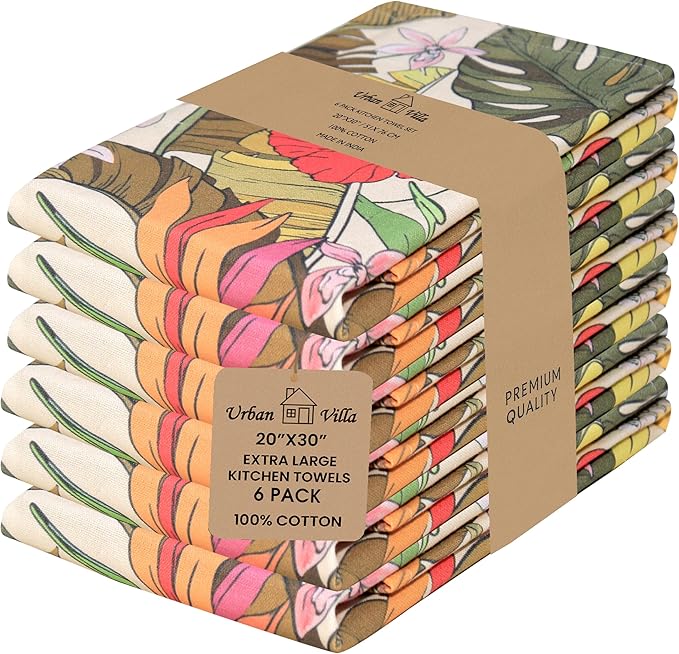Urban Villa Kitchen Towels Set of 6 Hibiscus Print Kitchen Towels 20X30 Inches 100% Cotton Highly Absorbent Kitchen Towels Premium Quality Ultra Soft Mitered Corners KitchenTowels