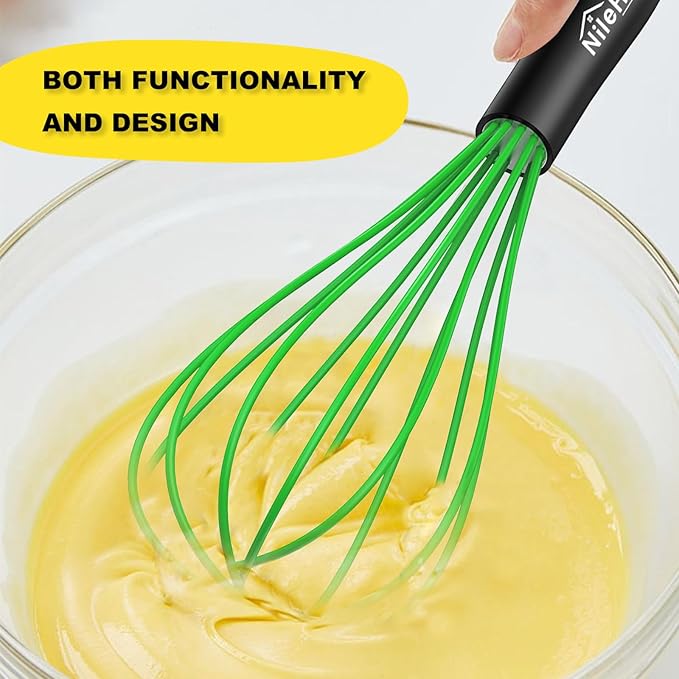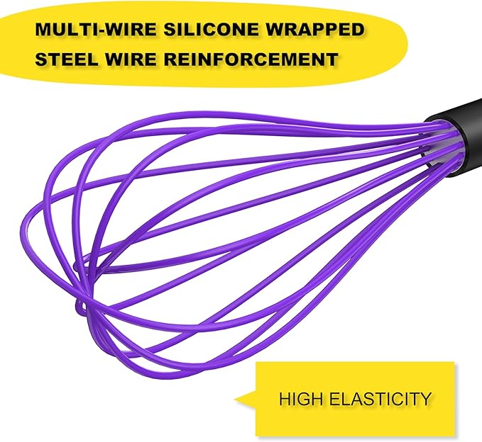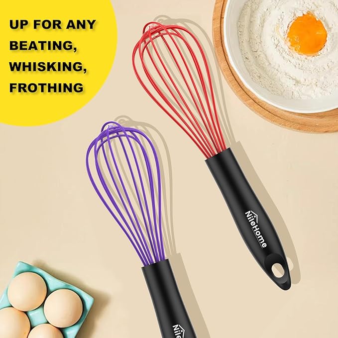 NileHome Silicone Whisk Set, 3 Pack Kitchen Whisk 10" Kitchen Wisk Wire Whisks for Cooking, Whisking, Blending, Beating, Stirring-Multicolor